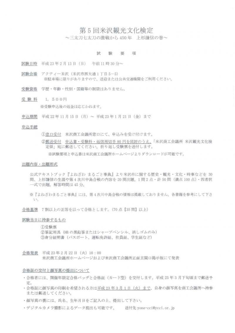 「米沢商工会議所 米沢観光文化検定係」宛に郵送してください。