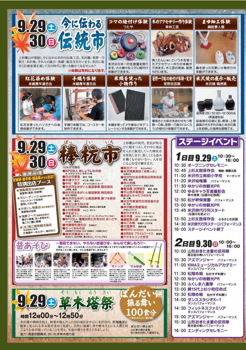 ▼ステージイベント、今に伝わる伝統市、棒杭市、草木搭祭
