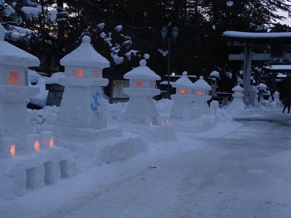 明日(2/13)から二日間の「上杉雪灯篭まつり」が始まりますが、その前日(2/12)にプレ点灯が行われます。