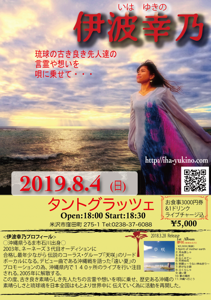 ▼次の日8月4日は沖縄のシンガー伊波幸乃さんのライブ!