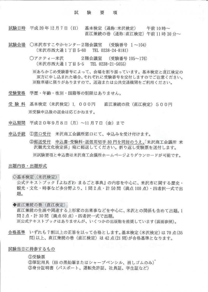 「米沢商工会議所米沢観光文化検定係」宛に郵送