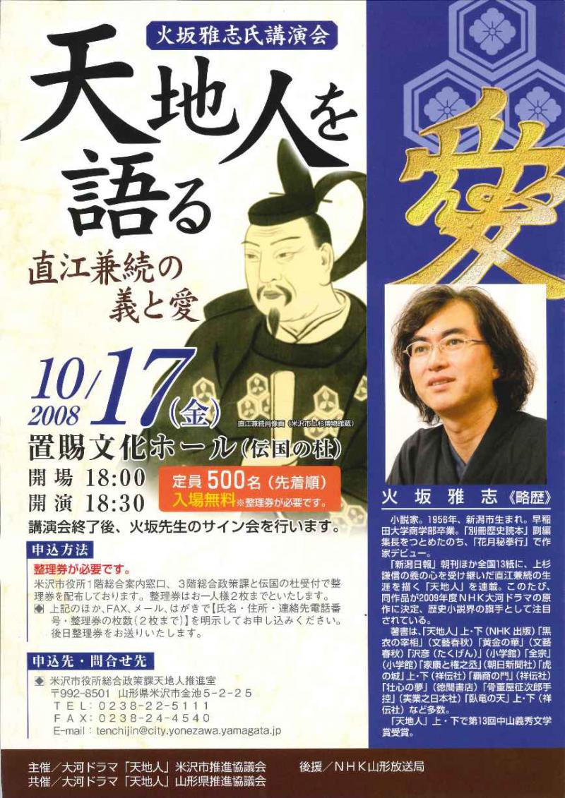 ▼火坂雅志氏講演会「天地人を語る」
