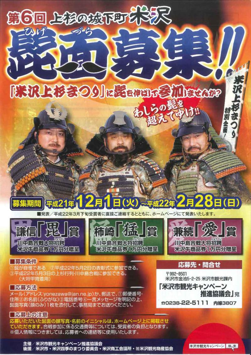 髭自慢の方、どんどん応募して「米沢上杉まつり」をPR