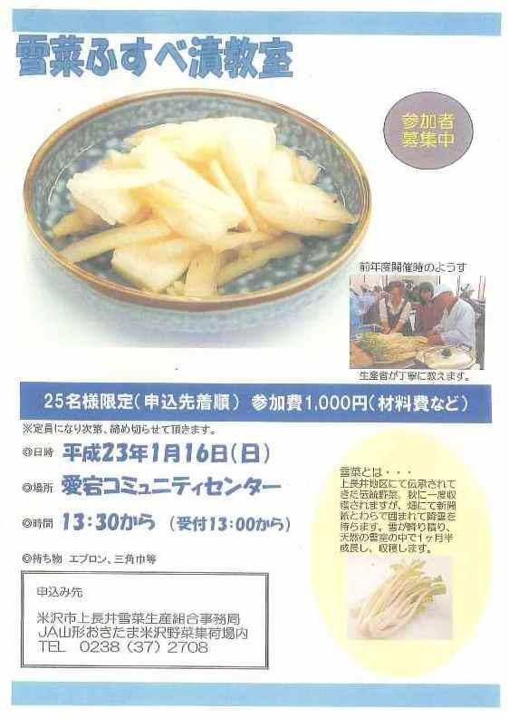 ▼雪菜ふすべ漬教室開催!参加者募集!