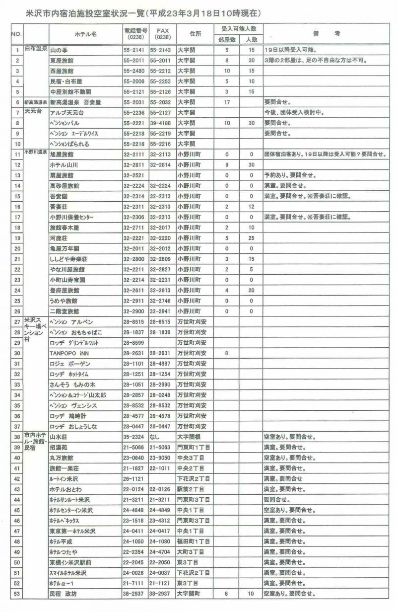 米沢市内宿泊施設空室状況一覧 (staff)