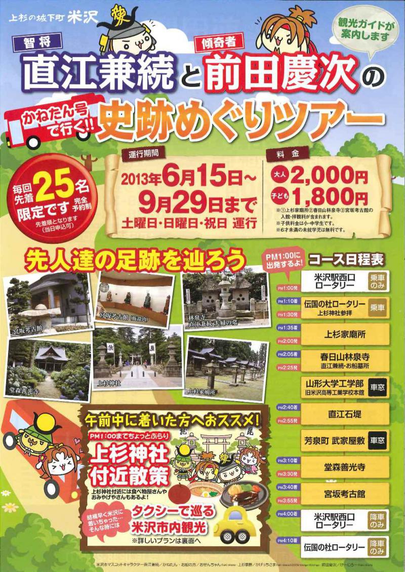 ▼直江兼続と前田慶次の史跡めぐりツアー運行開始!