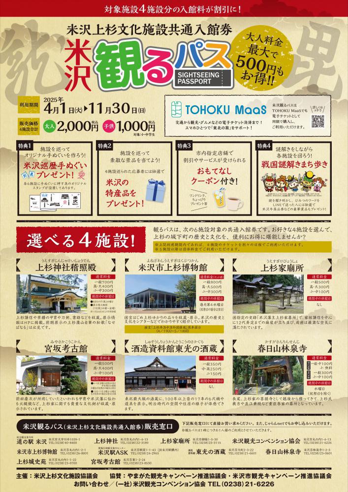 ▼お得な上杉文化施設共通入館券「米沢観るパス」で米沢の歴史観光をお楽しみください!