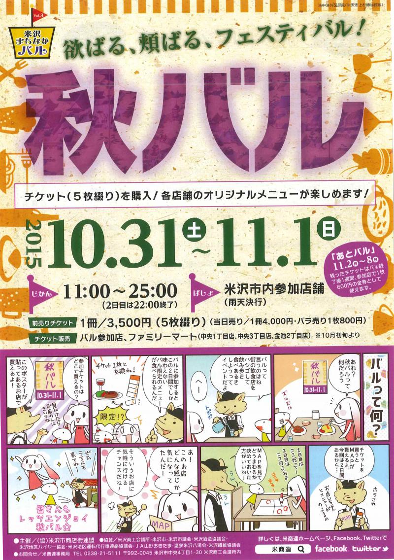 ▼米沢まちなかバル開催![平成27年10月31日〜11月1日]