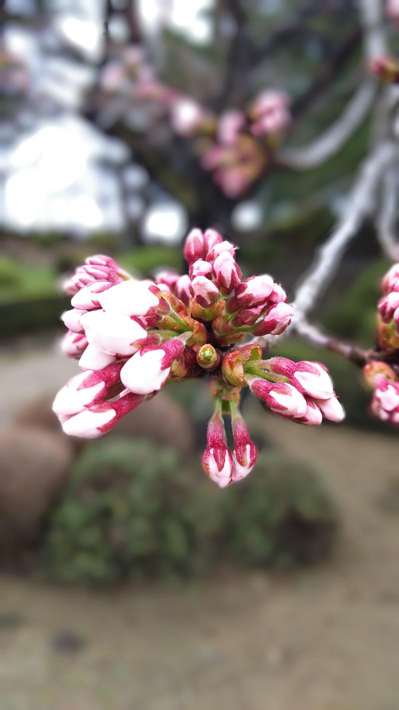 咲始めですが、御堀周りはまだまだつぼみが多く