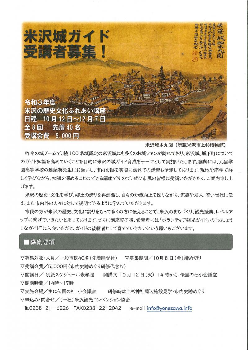 米沢の歴史講座 米沢城ガイド育成講座の受講者募集のお知らせ