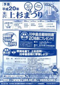 copyright yonezawa powered by samidare community line http://yonezawa.info/ http://yonezawa.info/ http://oki-tama.jp/ http://yamagatan.com/ チラシ裏面「予告 平成20年米沢上杉まつり」